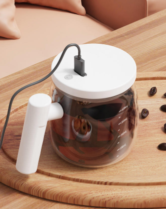 内置可充电电池,Type-C接口充满一次能用很久。不需要插着电线使用,办公室、家里、宿舍、出差带着都方便。放在办公桌上,冲咖啡时轻轻一碰,同事还在翻抽屉找勺子,你已经喝上了。放在家里,早上冲杯热可可,一键搅匀,省时省力。