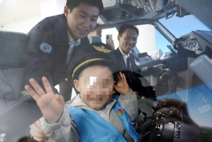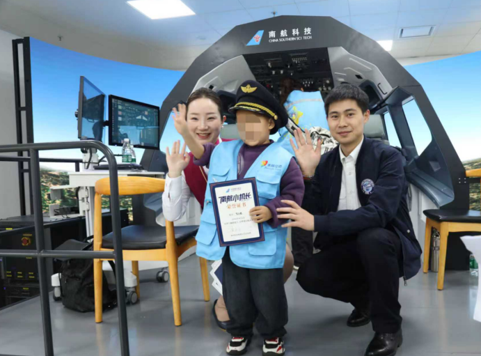 活动中,资深乘务员化身“情绪安抚师”,通过渐进式脱敏引导(如触摸座椅、观察仪表盘),全程以轻柔语言与身体接触建立安全感;飞行教员则以“机长叔叔”身份讲解航空知识,确保体验全程安全可控。活动尾声,南航为每位孩子颁发“南航小机长”荣誉证书,见证他们从紧张到自信的蜕变。