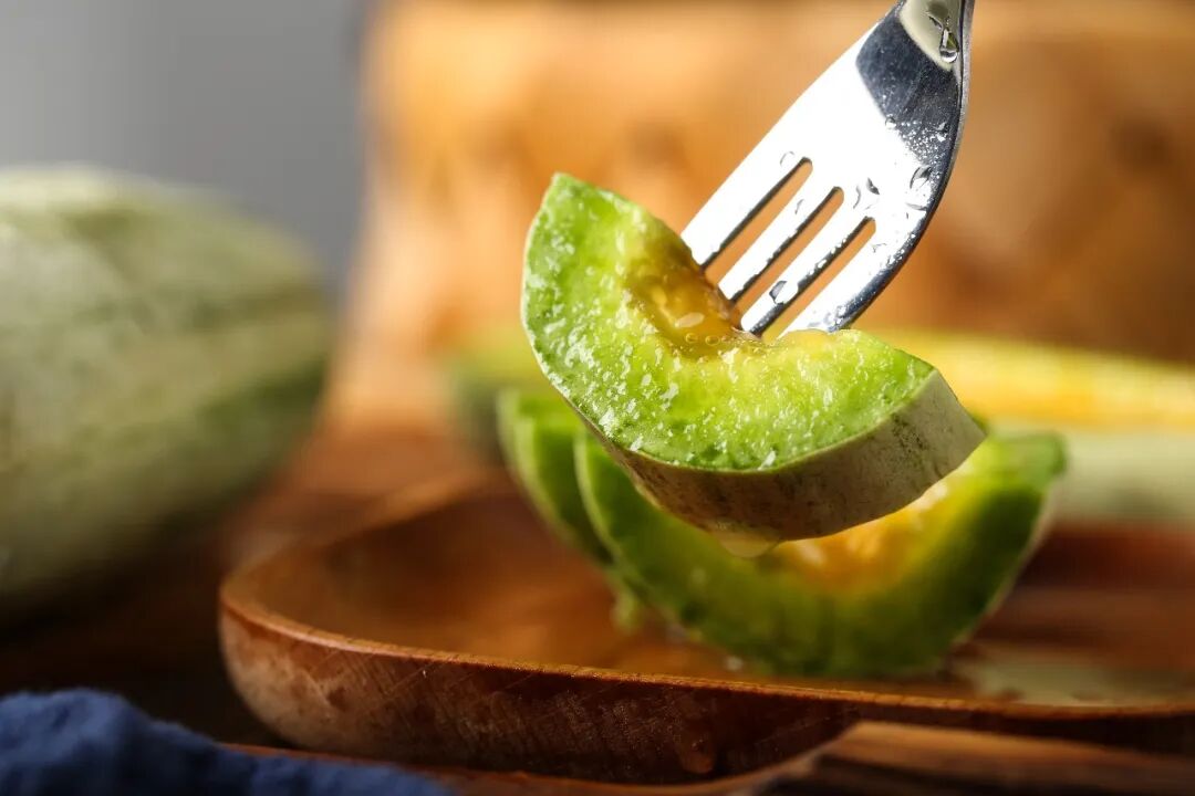 羊角蜜甜瓜还是一种生食的水果,食用后不但可以消渴除烦,更可以去掉嘴里的异味,餐前或餐后来一颗,再好不过。