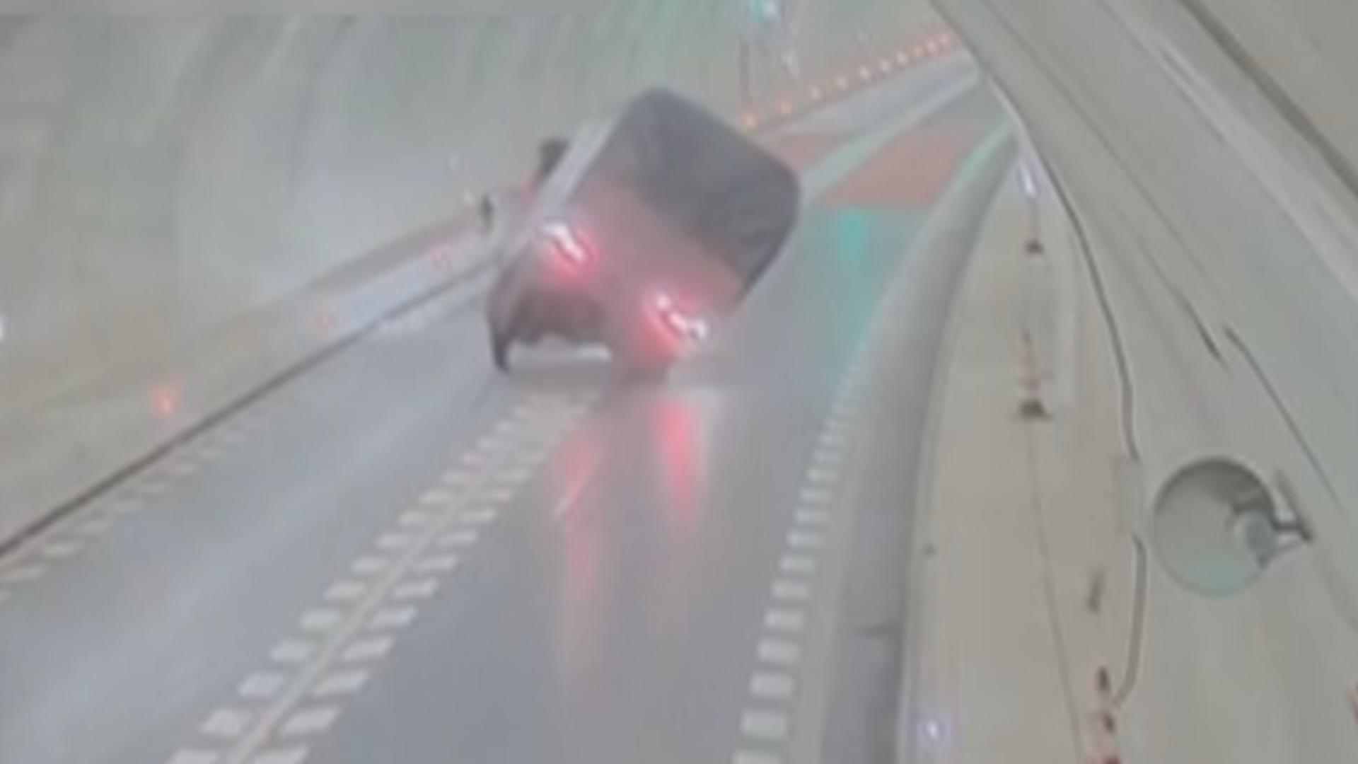 近日,纳兴高速白马洞隧道内发生了一起交通事故。一辆货车在隧道内突然变道,导致车辆失控侧翻。