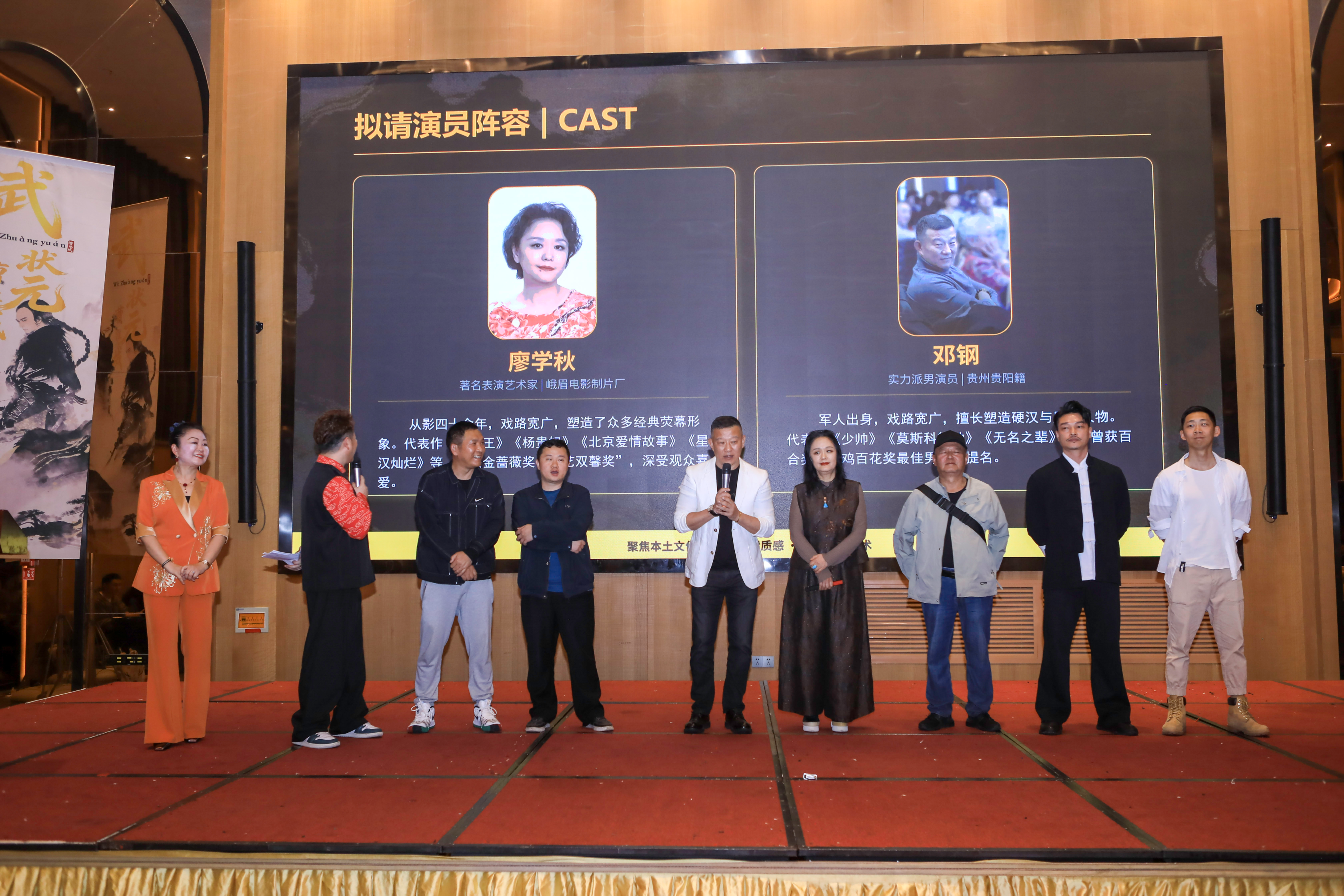 制片人刘秀红、导演宋奇、编剧曹伟等主创团队集体亮相。演员阵容中,廖学秋、邓钢、朱松、张戈添、陈韦然等实力派演员悉数到场。值得一提的是,演员邓钢是地道的贵州籍,曾出演《我的故乡晋察冀》《少帅》《莫斯科行动》《无名之辈》等作品;青年演员陈韦然也是贵州籍,为国家武英级武术运动员,曾获全国武术比赛剑术冠军,参演过《师父》《狄仁杰之四大天王》等影片。两位贵州籍演员的加盟,让这部讲述贵州武状元传奇的电影更添本土分量。
