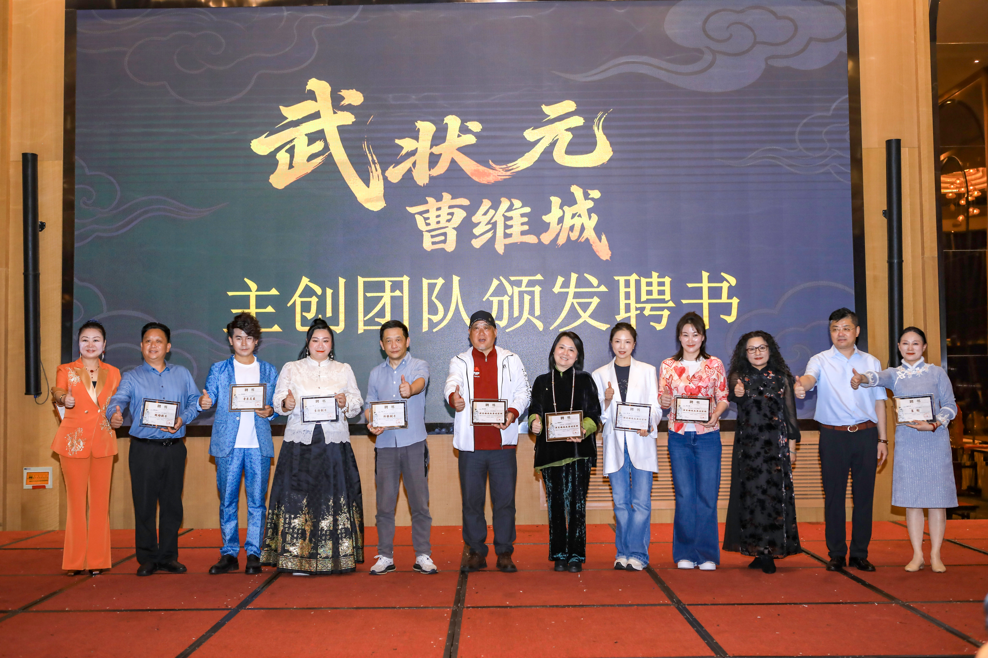 策划人邓云波介绍合作方案后,现场举行了隆重的合作签约仪式。随后,主创团队获颁聘书,全体嘉宾共同启动《武状元曹维城》电影项目,将发布会推向最高潮。