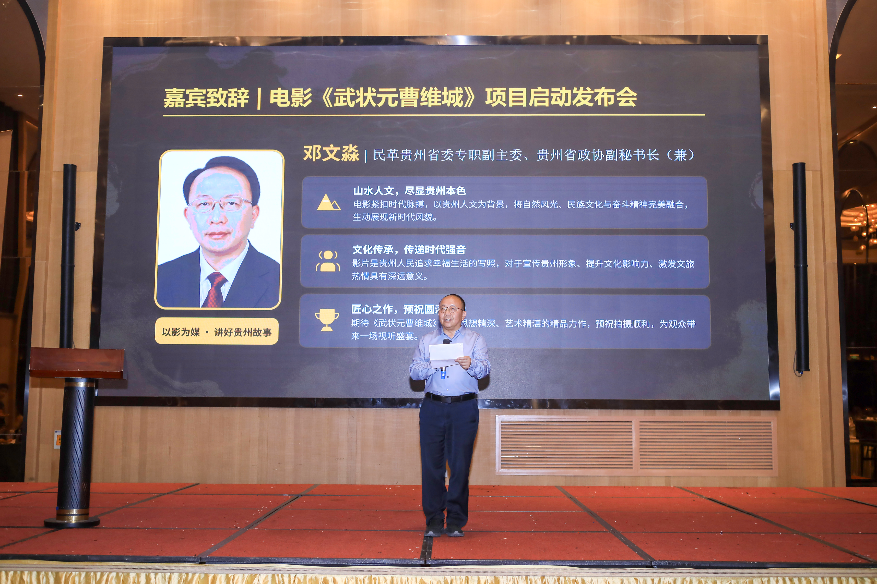 2026年4月8日,贵阳花溪·溪山里酒店二楼宴会厅座无虚席。由贵州宏邀文化传播有限公司出品,贵州省文化传媒企业联合会、贵州省网络作家协会、贵阳市影视家协会指导,福泉市委宣传部、贵州金金实业有限公司联合摄制的电影《武状元曹维城》投拍发布会隆重举行。