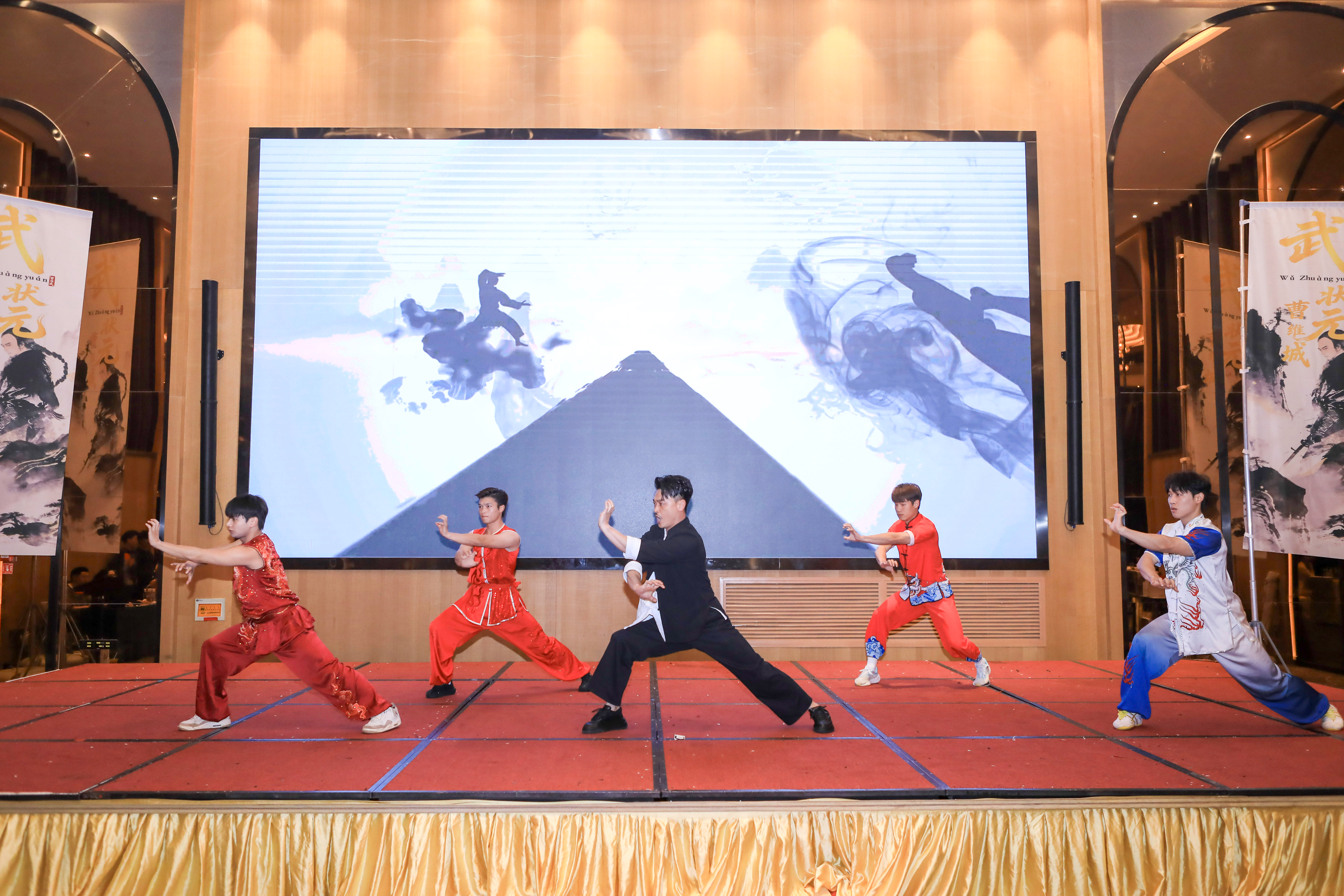 音乐总监龙智祥携昂利乐队带来男声独唱《行路难》,豪迈激昂;焜瀚武术学校带来精彩的武术表演《中华好少年》,气势十足、尽显少年武韵。最后,全体嘉宾合影留念后,晚宴正式开始,宾主尽欢。