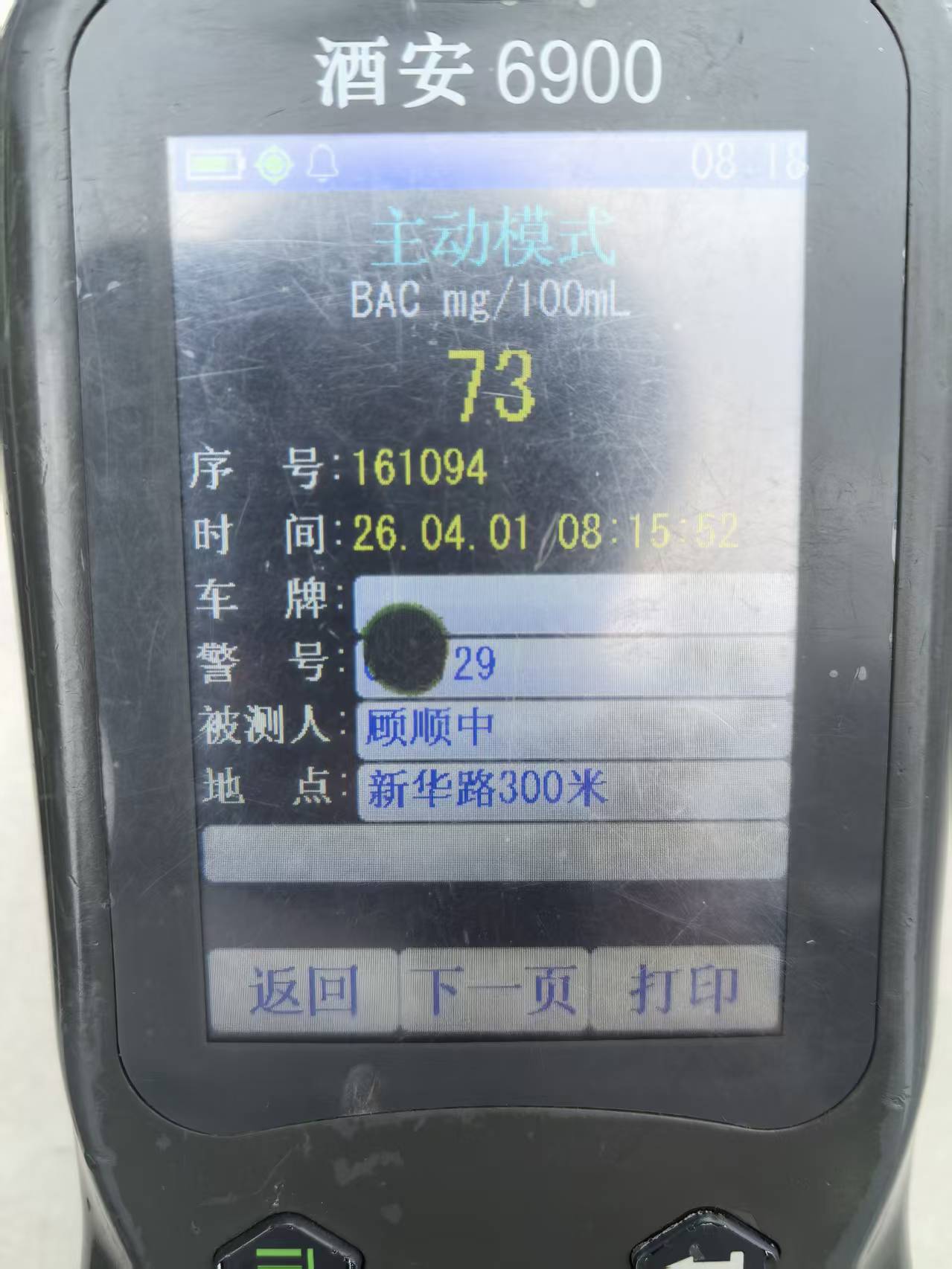 随后,民警对驾驶人周某某进行呼气式酒精检测,检测结果为73mg/100mL,属于饮酒后驾驶电动自行车的违法行为,驾驶人周某某对检测结果无异议。