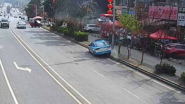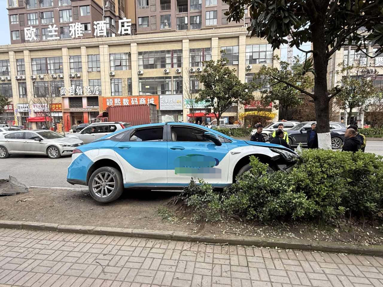 从警方提供的监控画面我们可以看到,出租车在经过十字路口时还是正常行驶的,可刚过了十字路口行驶的方向就有些不对了,直接朝着绿化带就冲了过去,随后车辆受阻停下。