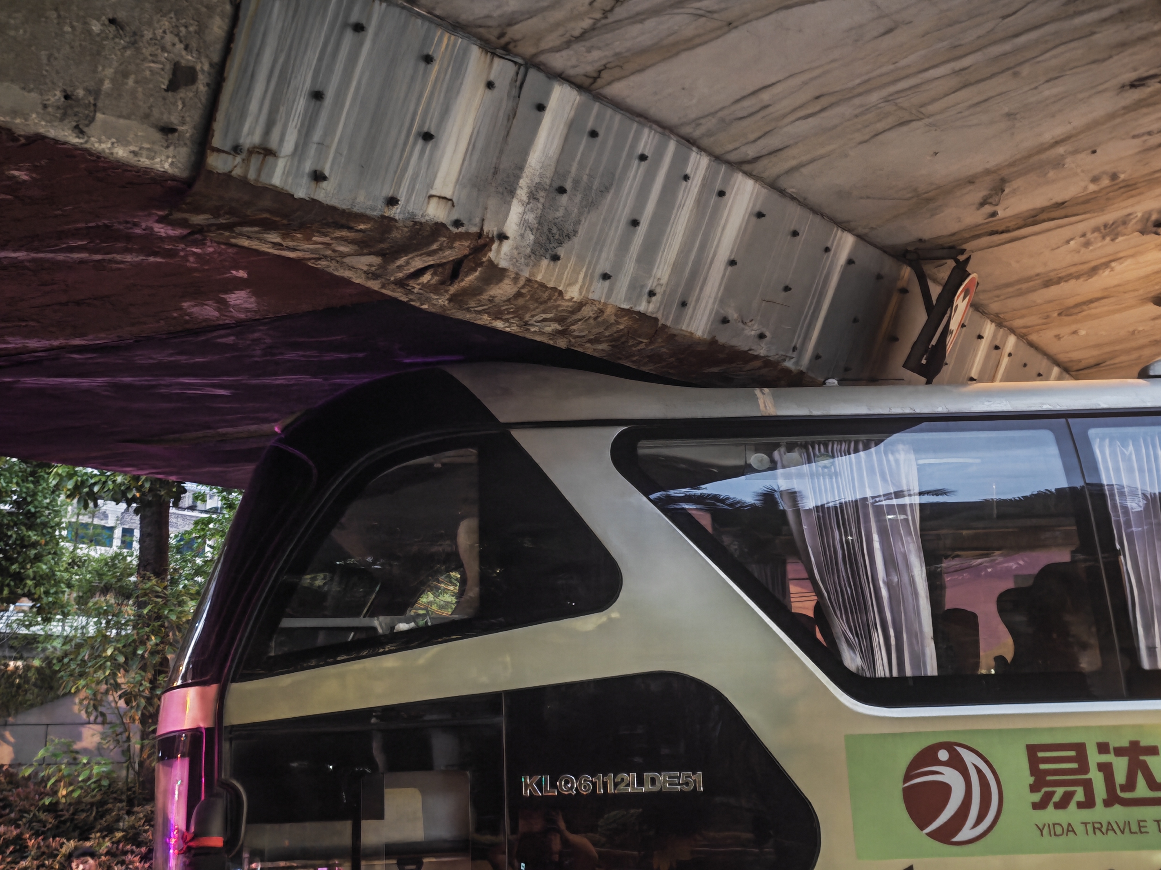 4月10日傍晚,一辆湖南号牌的旅游客车在贵阳市花果园底层桥不慎撞上限高桥柱,车辆卡在桥下进退两难。辖区交警迅速响应、科学联动处置,帮助车辆成功脱困。