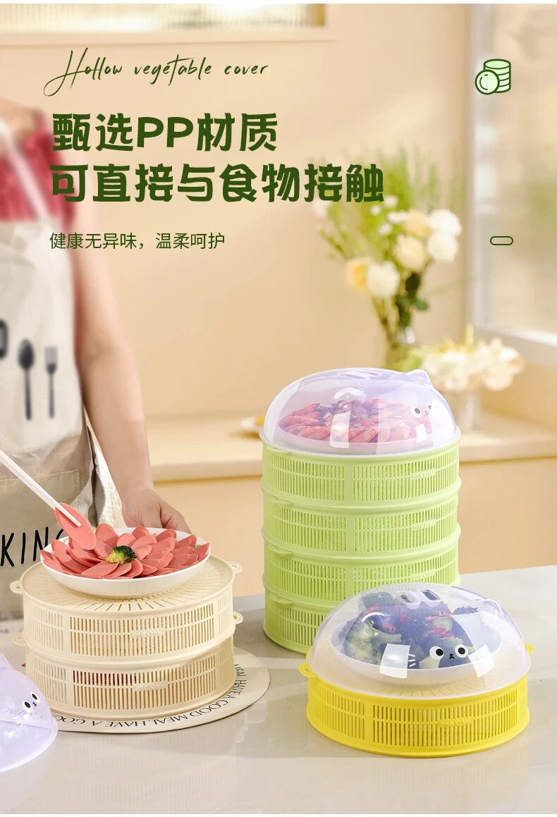 密集透气孔通风不闷饭,保持饭菜鲜香,同时有效防蚊、防蝇、防尘,守护饮食卫生。