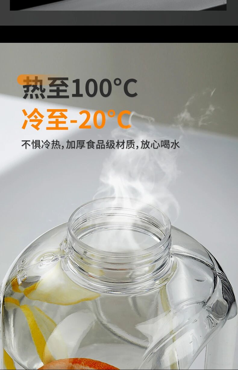 采用食品级PC材质,安全无异味,可装100℃热水、-20℃冷饮,高温不变形,耐摔抗造,用着更放心。