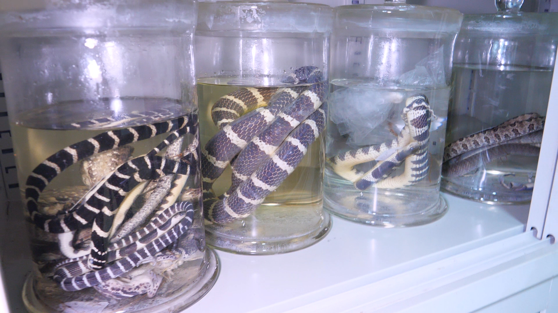贵州省生物研究所副研究员吕敬才:眼镜王蛇生长速度特别慢,像这种十多斤重的成年大蛇,在野外自然环境下,安稳生长发育,起码要三五年的时间。
