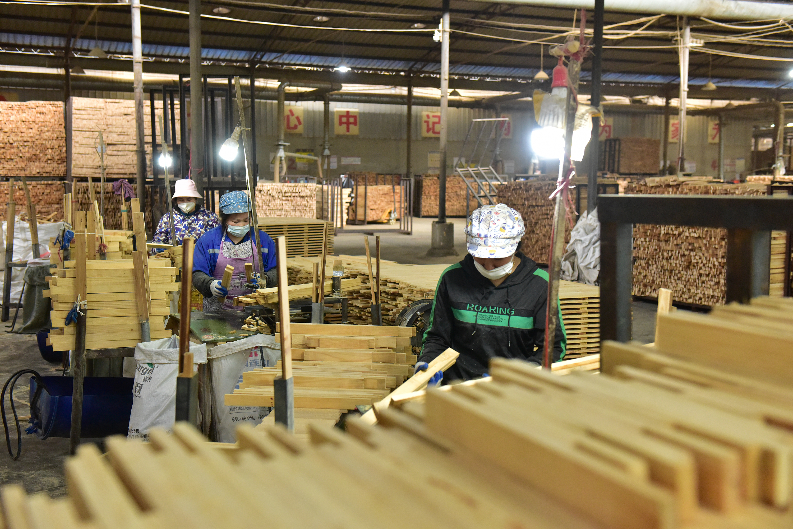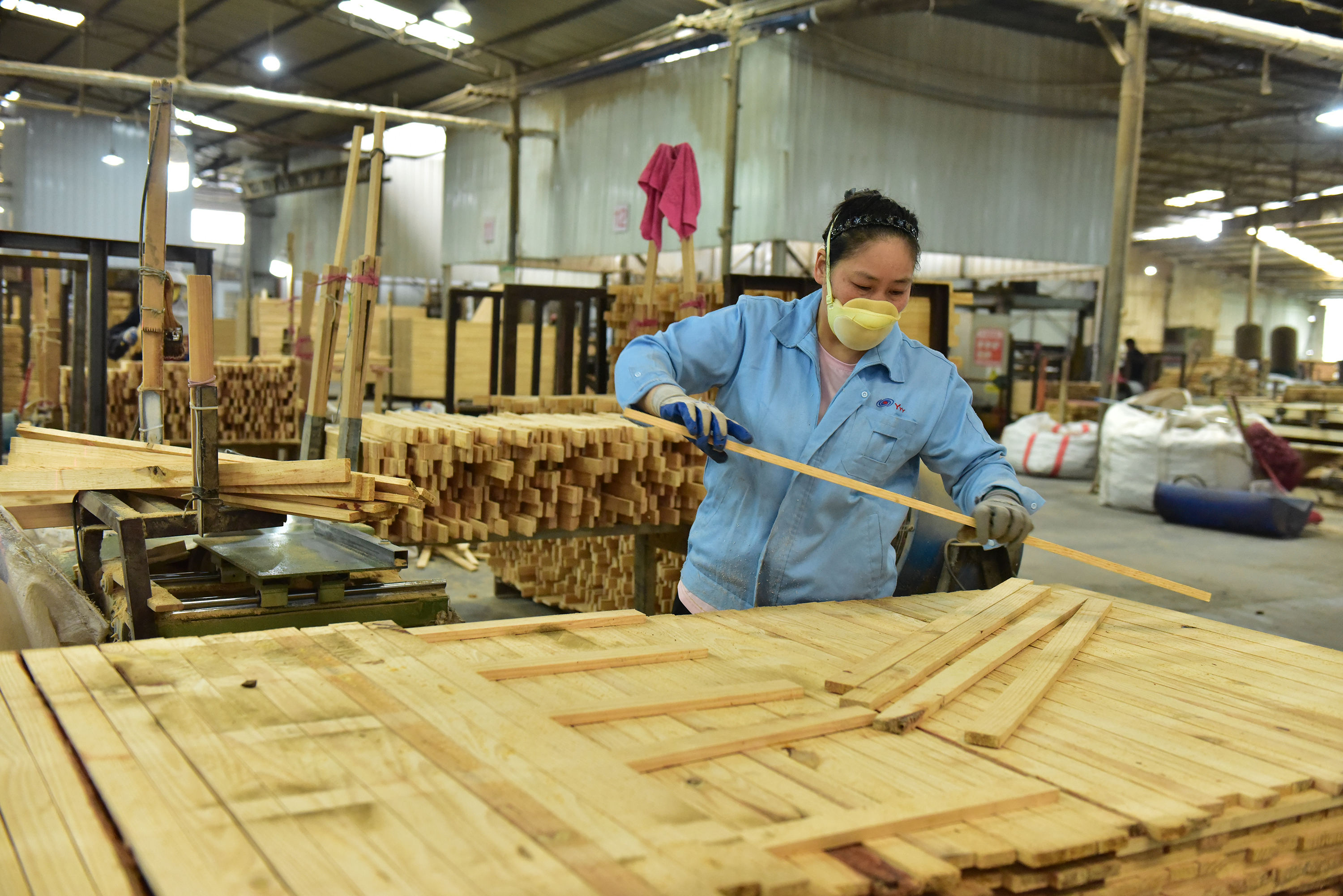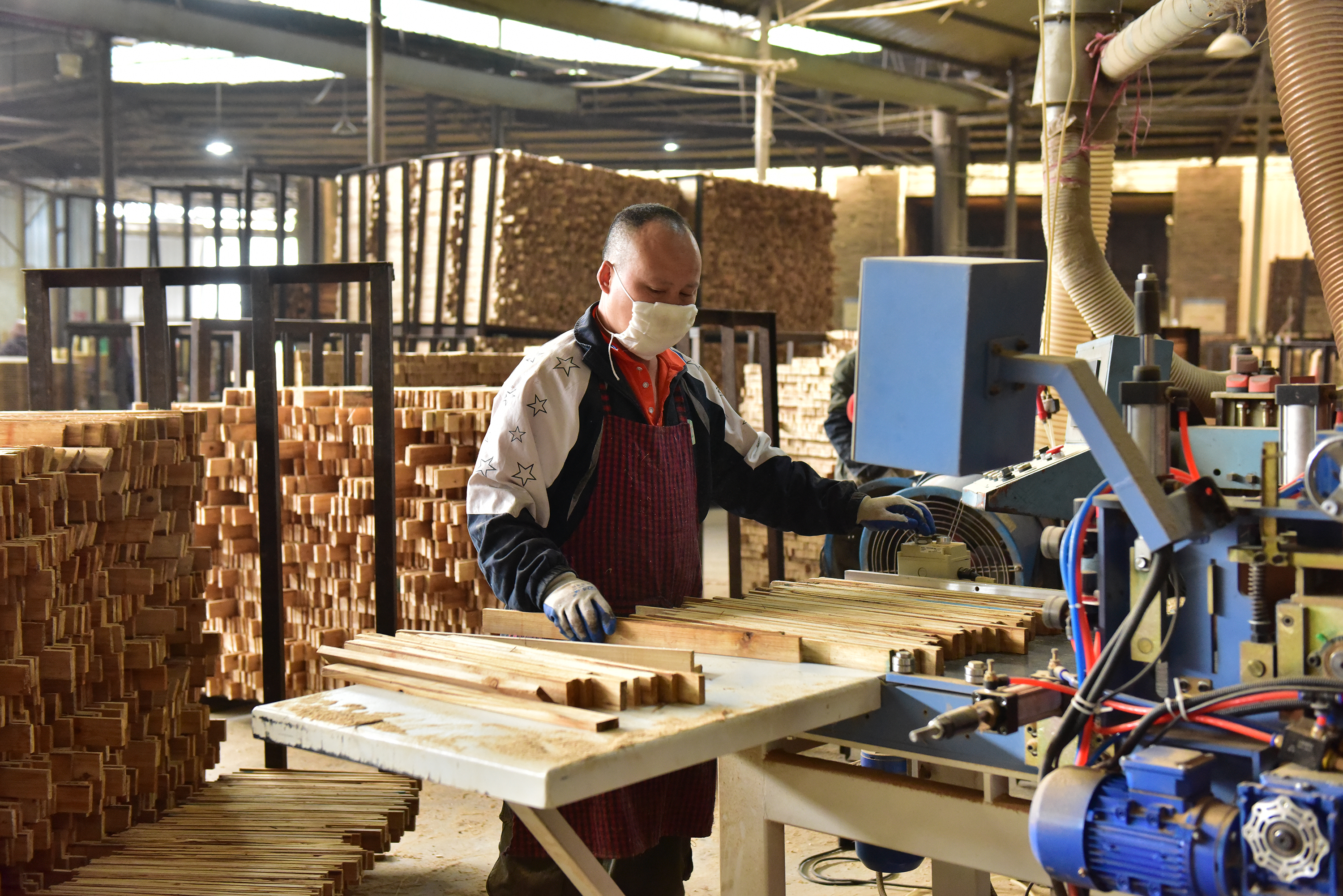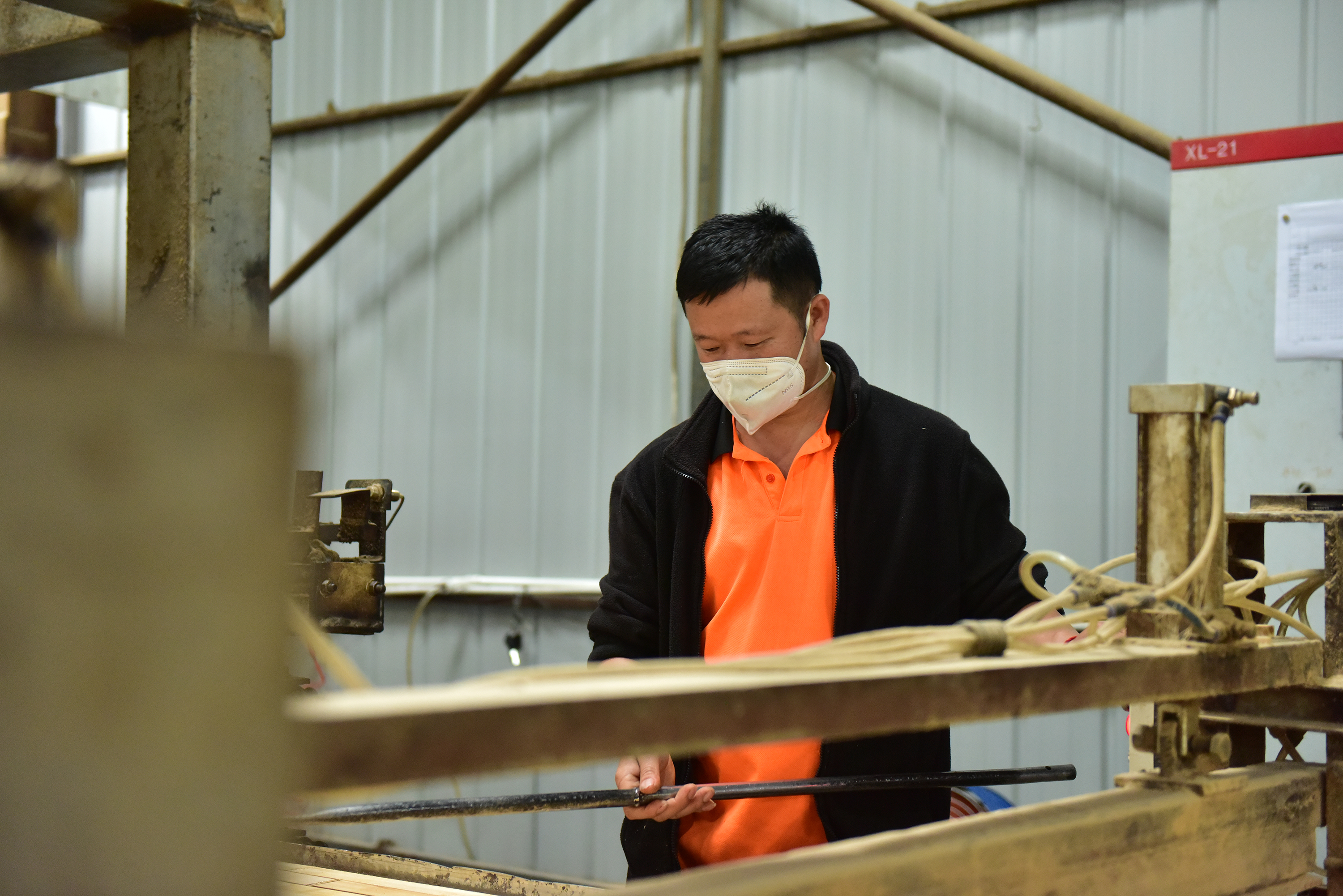 走进荣达木业半成品生产车间,机器有序运转、轰鸣声不绝于耳。现场工人们分工明确、各司其职,切割、拼接、定型等各道工序紧密衔接、高效推进,处处涌动着实干奋进、提质增效的生产热潮。